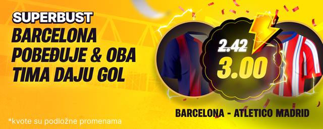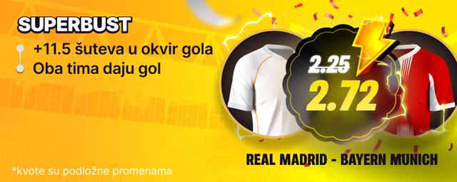 Iskoristi naše ekskluzivne Superbust i Superkvota mečeve i oseti razliku. To su specijalno pojačane kvote na najveće događaje dana, koje ti daju prednost. Na Superbetu ćeš pronaći najjače kvote na tržištu upravo kada su ti najpotrebnije.