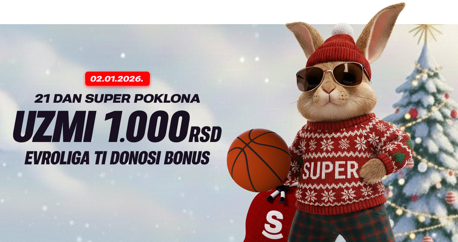 - Odigraš 1.000 RSD tokom dana na mečeve Evrolige. ✅