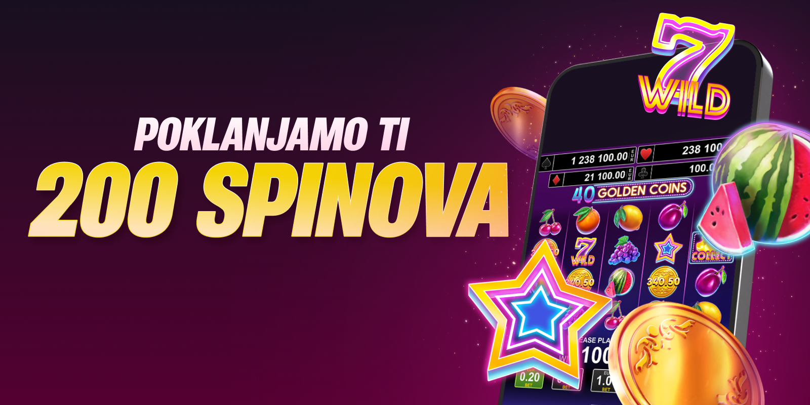👉 Dobijaš 200 spinova za igru 40 Golden Coins